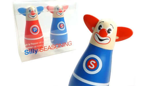 Bring all the fun of the fair to meal times with these fab salt & Pepper shakers, they come in the form of two circus clowns in bright red & blue.