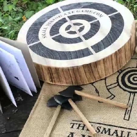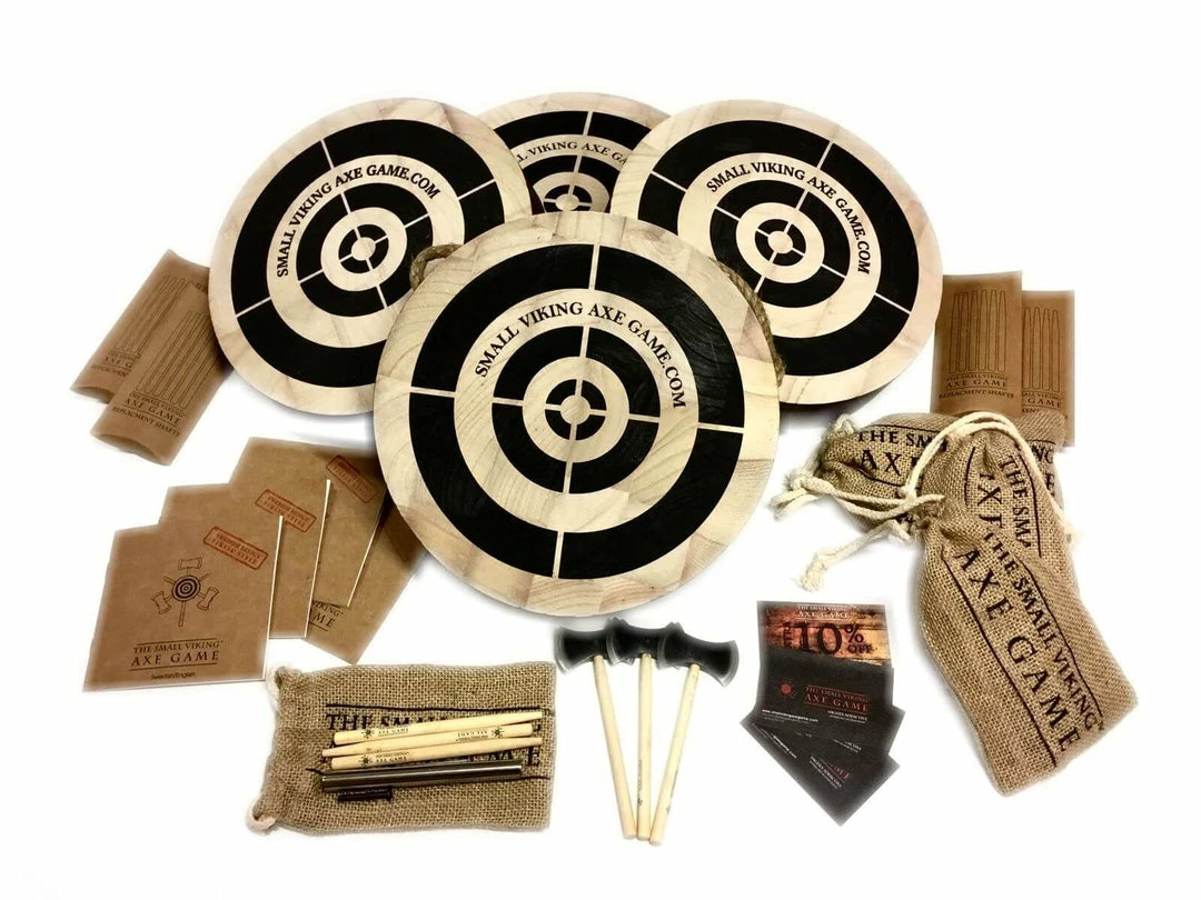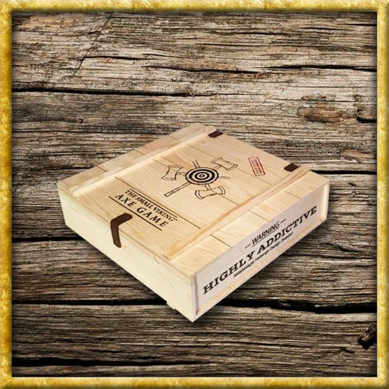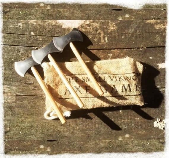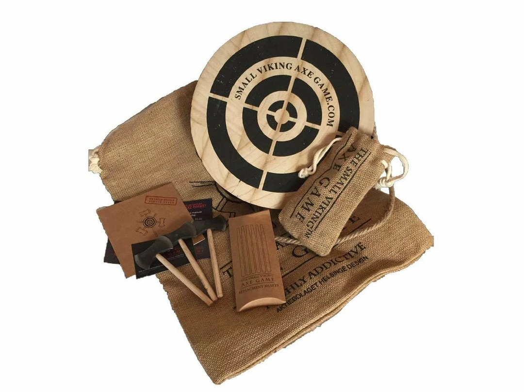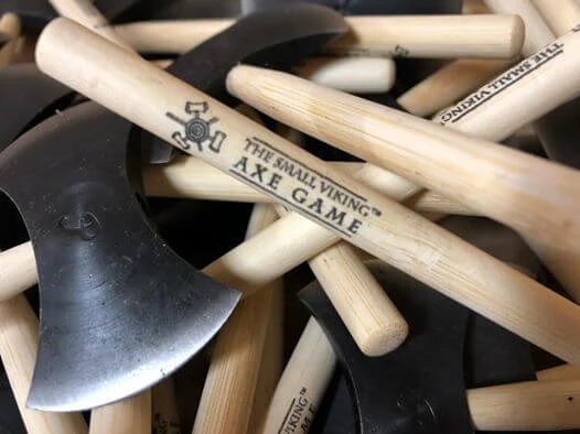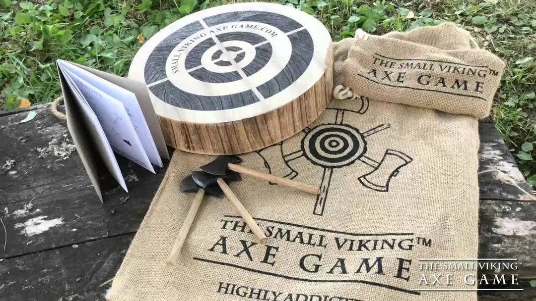 The Small Viking Axe Throwing Game is not for small Vikings, it is small axes, Viking style axes. This is actually pretty much like Darts, but with axes, although we do guarantee that this is much more addictive than darts and much more fun. This is all about technique, how you throw the axe and eventually where it lands, it’s not just about hitting a target, the axe has to stick in it…