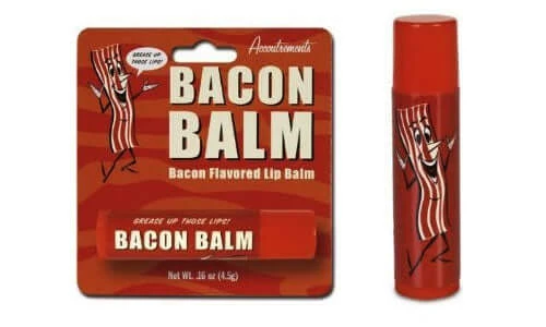 If you’ve got sore lips then there’s nothing quite like easing that parched lips with some meat. This meat happens to be bacon, and when we say bacon we mean lip balm, and when we say lip balm it’s not actually meat, in fact it bacon flavour and suitable for vegetarians.