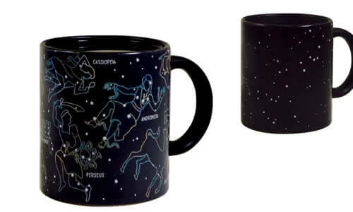 Just add hot water to this mug to see a miraculous change. Before hot water is added it looks like the night sky with twinkling stars. Then when hot water is added out come the many constellations.