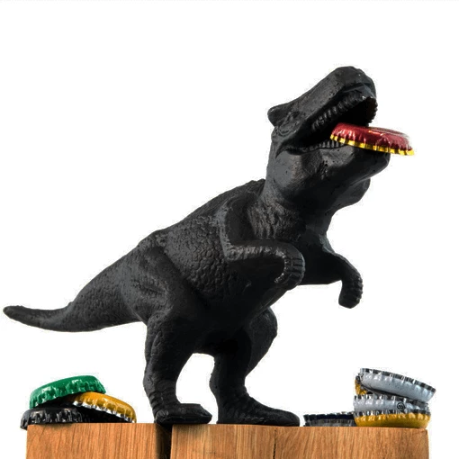 The dinosaurs might well be extinct, but they are still of use. For instance this T-Rex has a tail perfect for holding onto and getting leverage, whilst the jaws are perfect for getting hold of bottle caps and removing them.