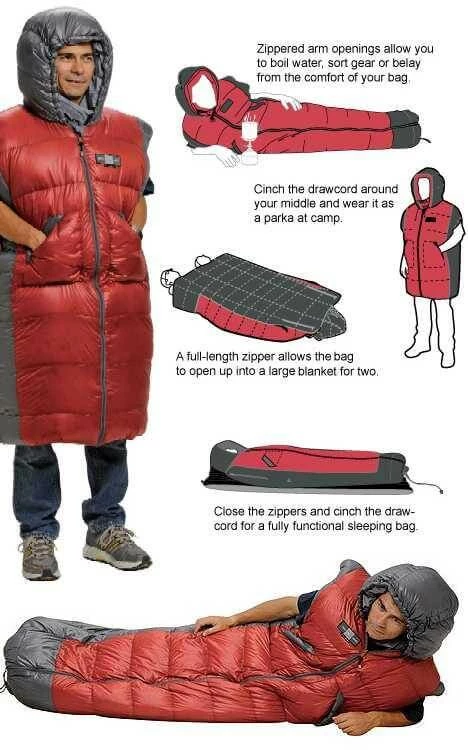 - Perfect for cooking or warming up in the tent before bed, the armhole design allows you to be up and active while surrounded by the comfort of your sleeping bag – zip off the bottom and your sleeping bag is an instant poncho