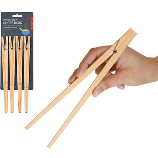 No need to make life harder than it needs to be. These chopsticks are indeed chopsticks. They are however hinged at the top. This make them much easier to use.