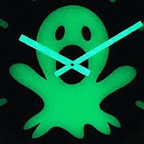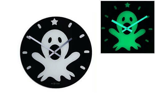 The Ghost Clock has a luminous Ghost Face which not only looks great when the lights go out but also has the practical use of being able to tell the time without turning the light on.