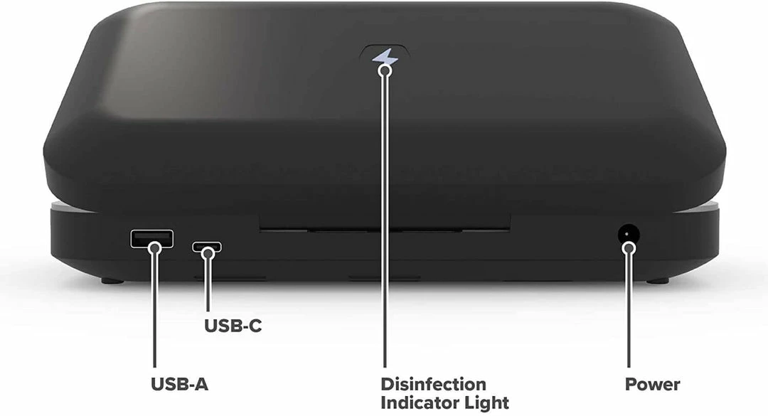 PhoneSoap”s glowing lightning bold indicates when your device is being sanitized.