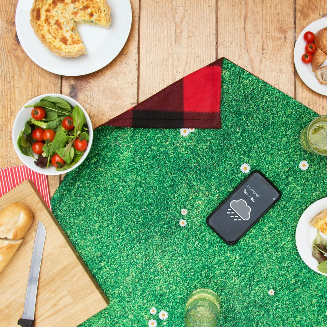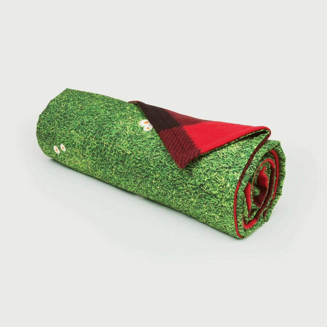 - Double sided print; Realistic Grass & Checkered Fleece.