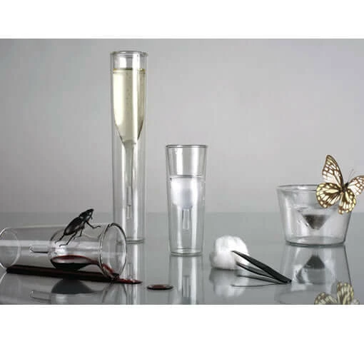 Besides the visual beauty, there is another extremely convincing argument: your drink simply doesn’t warm as fast as it would in a glass as you are not touching it at all and if you really want it cold, chill the glasses in the freezer and create an amazing visual presentation.