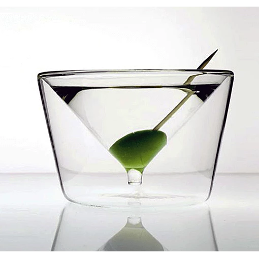 The Inside Out Martini glass is particularly amazing because it is a lot shorter than the usual Martini glass, but it creates a wonderful presentation and is a lot better to hold than balancing an overly wide glass filled to the rim on a thin stem.