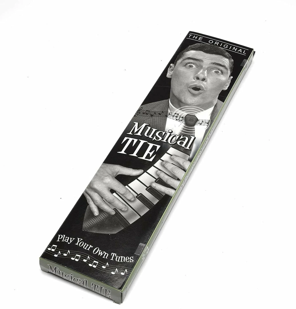 The tie comes individually boxed with 8 touch sensitive piano keys and a speaker unit in the top knot.