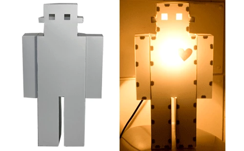 Add a bit of character to the room with the Robot Lamp. With his cute and quirky looks he’ll add ambience and ambivalence to any room, the cold exterior of a robot when switched off but amber glow and shimmering warmth when switched on.