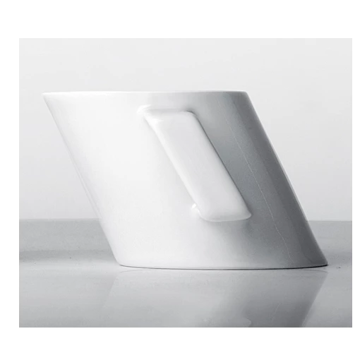 We tend to have preconceived ideas about everything. Lines have to be straight, and mugs have to be round and upright. The Shear Mug is unusual in the way that its slanted, but still works as well as your average mug.