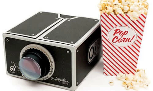 You no longer have to stand around your smartphone trying to watch the video that everyone is trying to see. Just pop your smartphone into the neat little projector and the video or picture will be projected onto the wall.