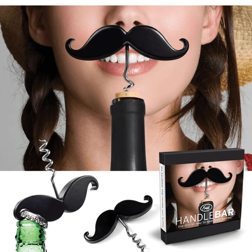 - Handlebar is a moustache shaped bottle opener!
