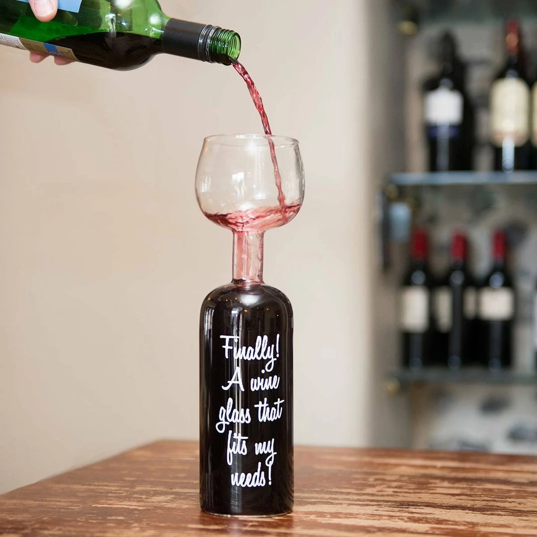 This is one glass that should not need topping up too often. That’s because this wine glass takes a full bottle of wine, it’s a sort of half glass half bottle. This now means you spend less time topping up your glass and more time socialising. So you could say it’s a social glass.